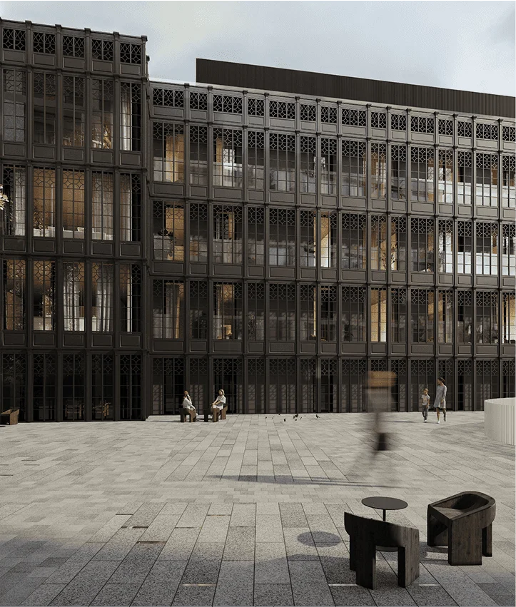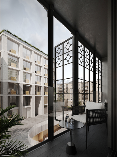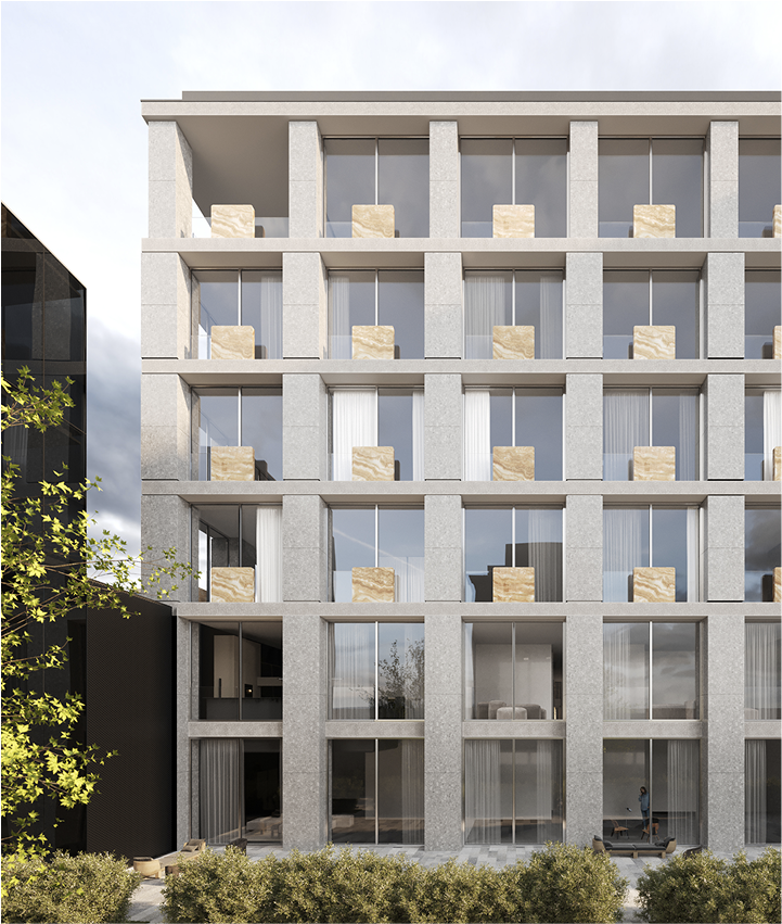 Особняк с резиденциями «Орден» — возможно, самая прямая метафора драгоценности во всем «Камергере». Фасад выполнен из натурального светло-серого архитектурного бетона, его отличает лаконичность и строгая симметрия. Пропорции продуманы, симметрия бескомпромиссна: особняк «Орден» станет идеальным местом для тех, кто ценит элегантность и сдержанность.