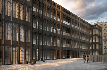 Особняк с резиденциями «Орден» — возможно, самая прямая метафора драгоценности во всем «Камергере».Фасад выполнен из натурального светло-серого архитектурного бетона, его отличает лаконичность и строгая симметрия..